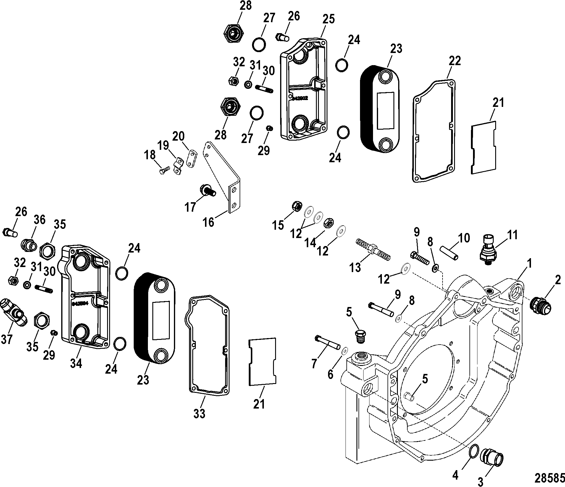 | 34 | 842584001 | COVER, Oil Cooler - Starboard | 1 | ||||||