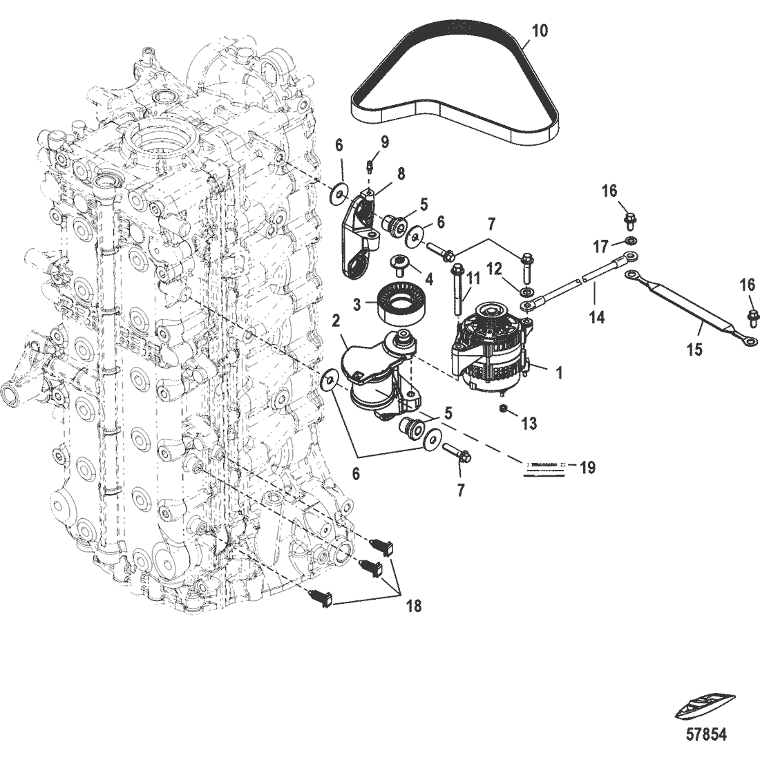 200 PRO VERADO 4-STROKE 6 CYL - Serial 2B144123 and Up - Alternator/Belt Tensioner Mounting